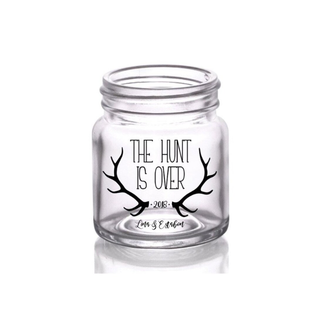 Mason Jar Shot Glass Wedding Favor Hunt Is Over 2 Oz Etsy Uk