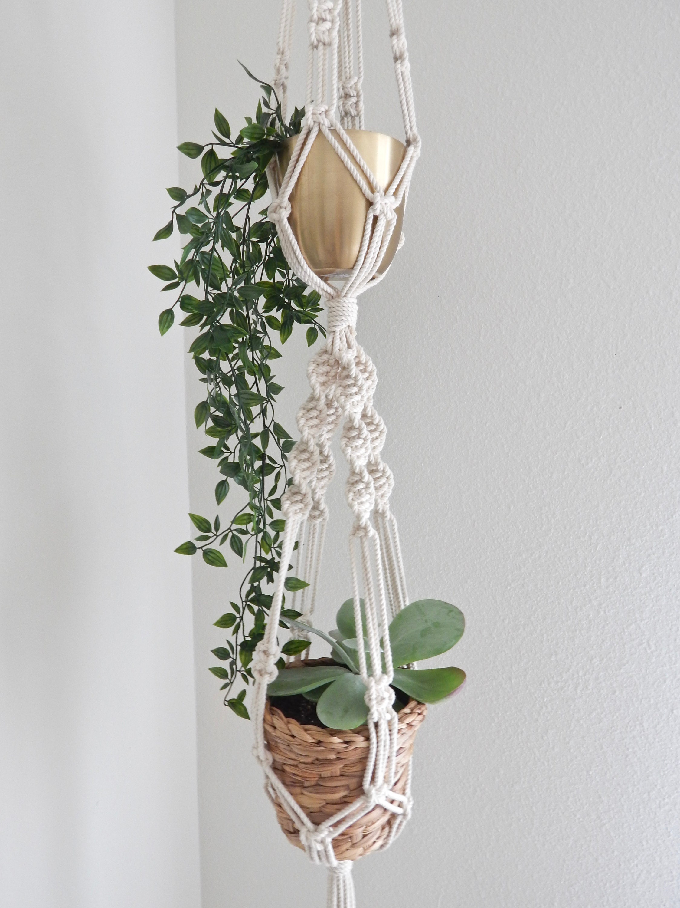 Natural Jute Knotted Rope Plant Hanger 2-Pack Add to Cart. Keep reading to find easy plant hanger patterns with only one or two knots more advanced plant hangers air plant hangers wall-style macrame and hanging pods or wall baskets. Web Check out our double macrame plant hanger with pots selection for the very best in unique or custom handmade pieces from our plant hangers shops.